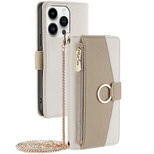 Flip case for iPhone 14 Pro, Wallet Zipper Pocket, with mirror, white