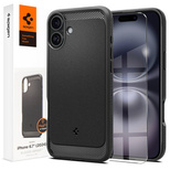 Spigen case for iPhone 16 Plus, Rugged Armor MagSafe, black + Tempered Glass 9H