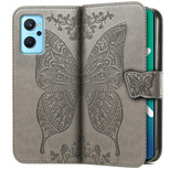 Flip case for Realme 9i / Oppo A96, Butterfly, grey
