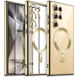 Case for Samsung Galaxy S24 Ultra, Electro MagSafe, gold + Full Glue Ceramic Glass