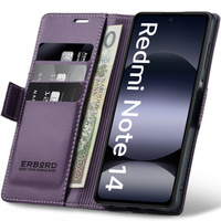Case for Xiaomi Redmi Note 14 5G, ERBORD Glossy Litchi, wallet with flap, purple
