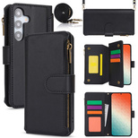 Flip case for Samsung Galaxy S24, Wallet Zipper Pocket RFID, with shoulder strap, black