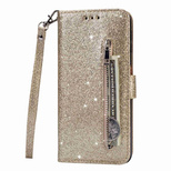 Flip case for Samsung Galaxy S24 Ultra, Wallet Zipper Pocket Glittery, gold