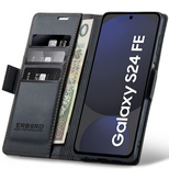 Case for Samsung Galaxy S24 FE, ERBORD Glossy Litchi, wallet with flap, black