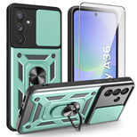 Armored Case for Samsung Galaxy A36, CamShield Slide, green + Tempered Glass 9H