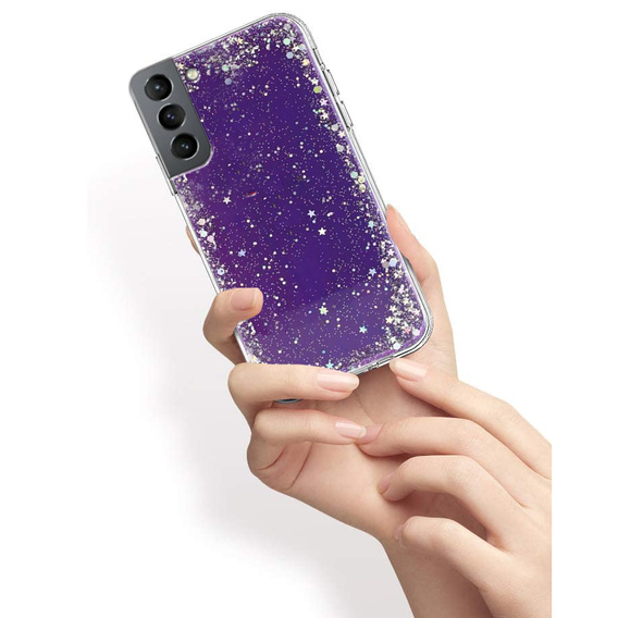 Case for Samsung Galaxy S21, Glittery, purple is a combination of high-quality plastic and TPU materials. New quality and longer durability among cases. It does not deform, retains its functional qualities for a long time. The case has the necessary cutouts, headphone input or power connector.