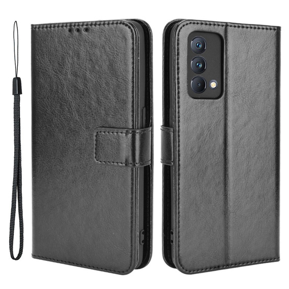 Flip case for Realme GT Master, Crazy Horse Wallet, black is an elegant, book case made of eco-leather that provides protection and an elegant look.