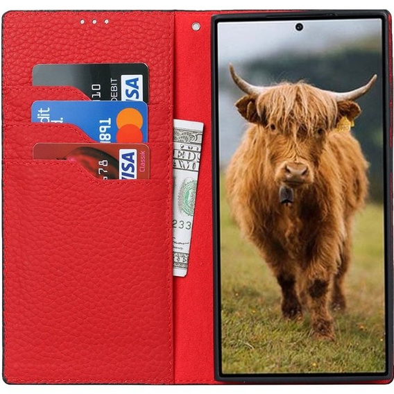 Leather case for Samsung Galaxy S22 Ultra, ERBORD Grain Leather, black is an elegant wallet case made of genuine leather.