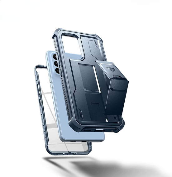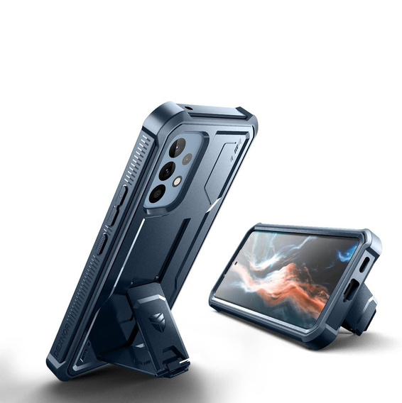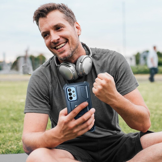 Armored case for Samsung Galaxy A53 5G, Dexnor Full Body, dark blue is one of the most protective and durable products in our entire range. The case consists of a back that has a built-in stand for more comfortable viewing of content on the smartphone's screen, as well as providing a more secure grip, as it can be used as a finger grip. The frame for the front of the device is made of a blend of soft thermoplastic material. It has a built-in film that further protects the screen from scratches and damage. These combination will take care of your phone's safety even during extreme situations.
