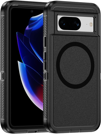 Case with frame for Google Pixel 8, for MagSafe, black is dedicated for everyday protection against scratches and drops. It is made of flexible and shock-absorbing TPU material, thanks to which it has protective qualities and improves the grip of the device in the hand. The case uses edge rims to separate both the screen and the camera from flat surfaces, preventing scratches on these sensitive parts of the device. An additional frame protects the sides and corners of the smartphone and effectively insulates the screen from the surfaces on which it lies. The back panel is made of durable PC material, giving the case a strong and unique look. Access to connectors and buttons is comfortable and positively affects the quality of use. In addition, the case specifically protects the device's rear camera. The case is equipped with a magnetic ring compatible with the MagSafe wireless charger, ensuring quick and easy charging.