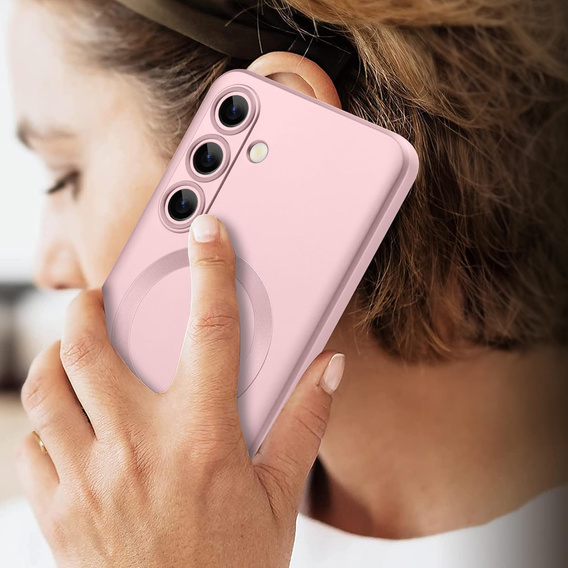 Case for Samsung Galaxy A56, ColorMag, for MagSafe, pink + 9H tempered glass manufactured from thermoplastic polyurethane provides effective protection against mechanical damage without noticeably increasing the size of the smartphone. The flexible material makes the phone easily enter the overlay.