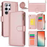 Flip case for Samsung Galaxy S24 Ultra, Wallet Zipper Pocket RFID, with shoulder strap, black
