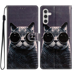 Flip case for Samsung Galaxy A25 5G, Wallet, Cat, black+ 9H glass