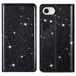 Flap case for iPhone 16E, Card Slot Glittery, black